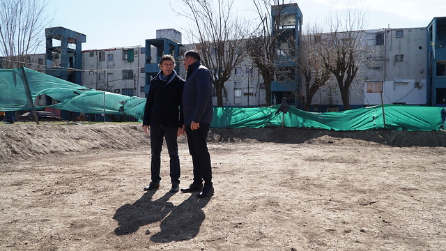 “Los vecinos de Santa Rita de los monoblocks conforman un barrio popular y trabajador. Nos interesaba trabajar también en la parte hidráulica para evitar anegamientos. Por eso, esta plaza tendrá una cancha de fútbol y básquet bajo nivel que también servirá como reservorio”, contó el intendente Gustavo Posse.