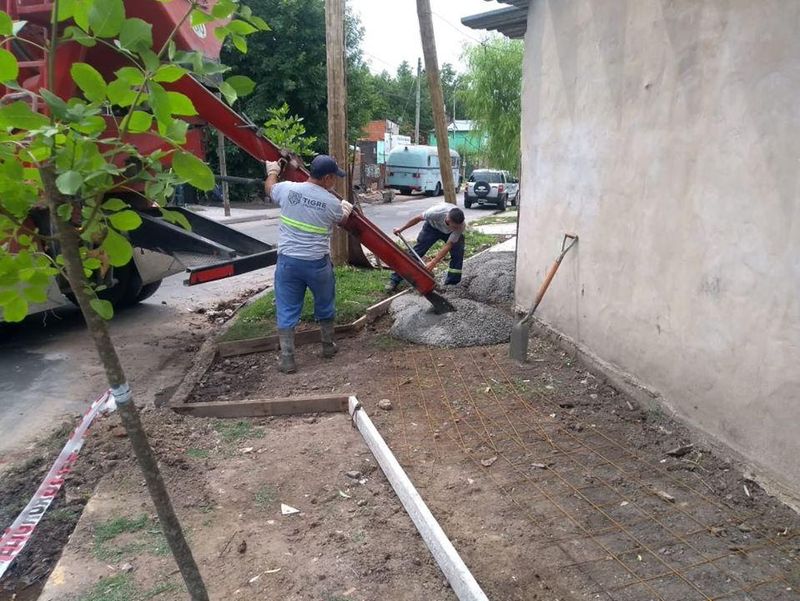 Las tareas se ejecutan con fondos de la comuna en Garibaldi, esquina Carlos Gardel; y en Balbastro, entre Susini y Av. T. de Alvear. Permiten mejorar la circulación peatonal en distintas localidades de Tigre.