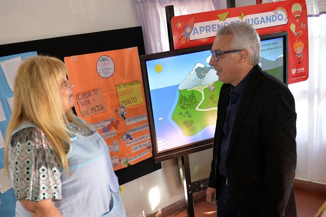 El intendente de Tigre visitó el establecimiento N°902, ubicado en el centro de la ciudad, donde ya funciona el sistema. El programa municipal «Aprender jugando» promueve la inclusión digital desde la etapa inicial de la educación.