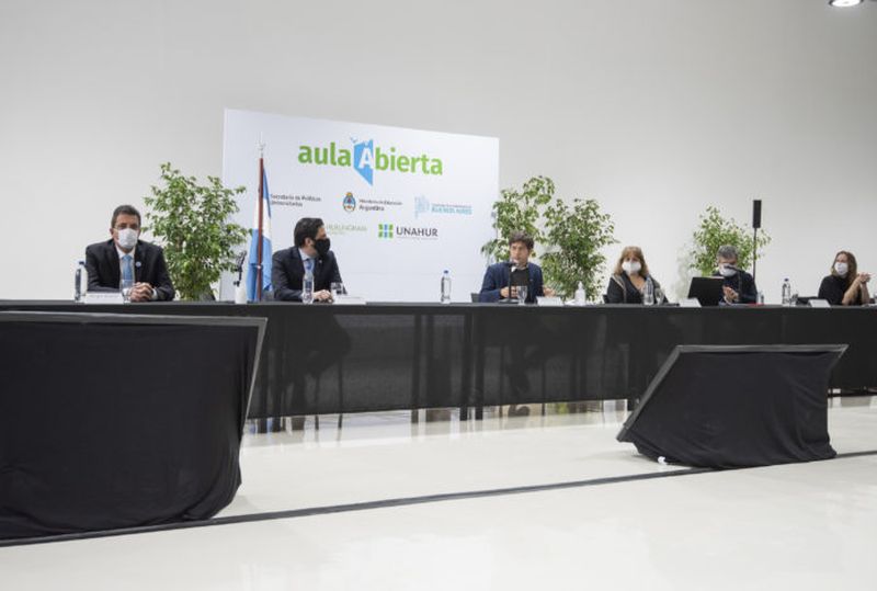 Kicillof destacó que la plataforma Aula Abierta (http://aulaabierta.unahur.edu.ar) permite realizar tareas pedagógicas para los establecimientos de todos los niveles y las diversas modalidades educativas del distrito: “Lo estamos preparando para toda la provincia de Buenos Aires, configura una primera experiencia con el apoyo de la universidad”, aseguró.