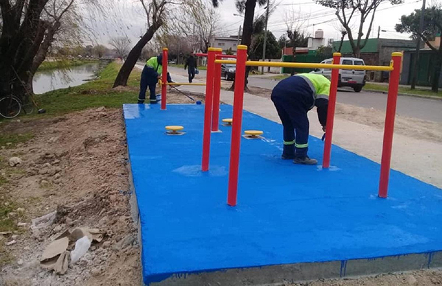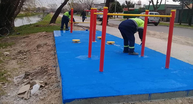 La obra, hecha con fondos municipales, se realiza sobre 1.500 metros en la calle Almirante Brown desde Mármol hasta Volta. Una vez finalizada, los vecinos podrán hacer ejercicios saludables como abdominales, brazos y piernas, entre otros.