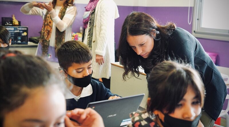 La intendenta de Vicente López, Soledad Martínez, acompañó a los docentes y alumnos en una de las clases de programación en la Escuela Municipal Primaria Manuel Dorrego.