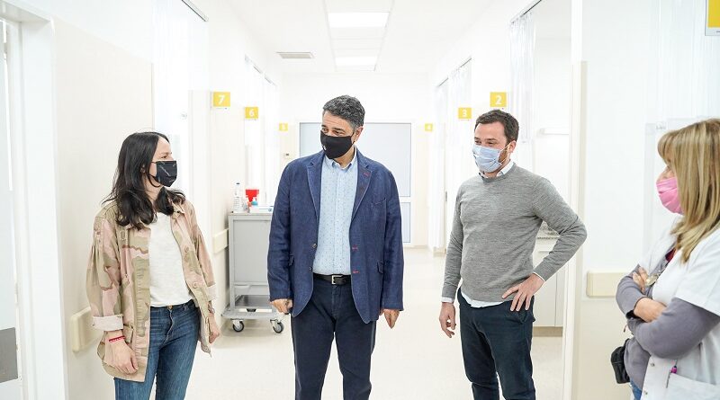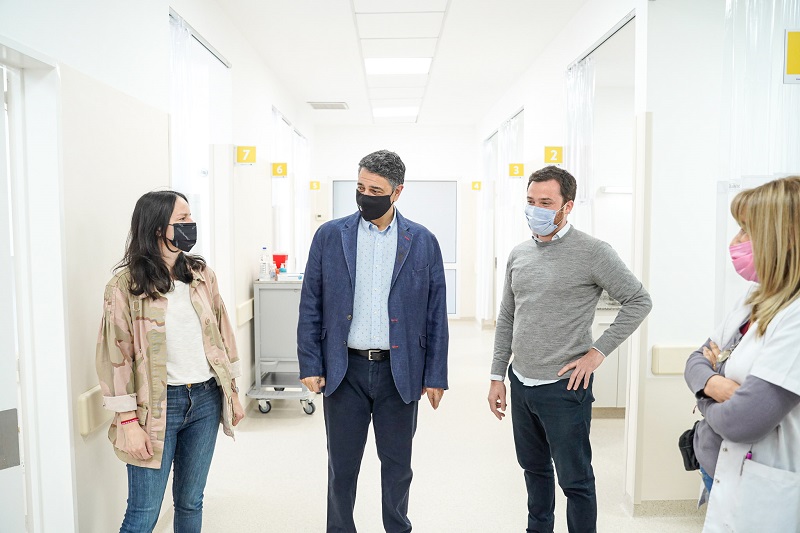 El intendente de Vicente López, Jorge Macri, acompañado por la responsable del comité social COVID y concejal, Soledad Martínez, visitó esta mañana la renovación del sector y dialogó con médicos y enfermeras que trabajan allí sobre el avance de las obras y la renovación de cada espacio del Hospital.